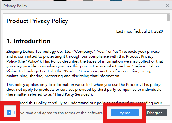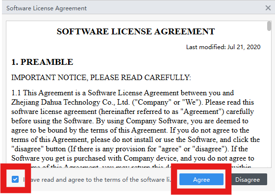 Select the checkbox and select "Agree"